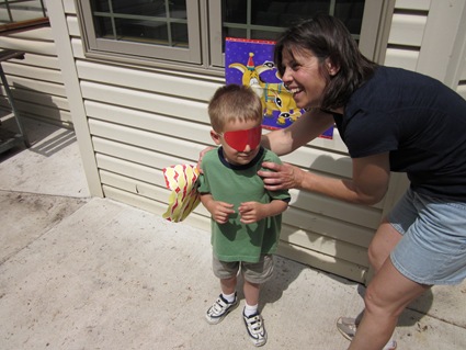 The kids thought this game was fun – the object was to break the balloon tied to the other kids’ ankles before yours broke. It was pretty funny to watch. Joe didn’t want to participate because he doesn’t like the sound of popping balloons, and Patrick was pretty upset when a rather sturdy piece of grass broke his before the game even started!